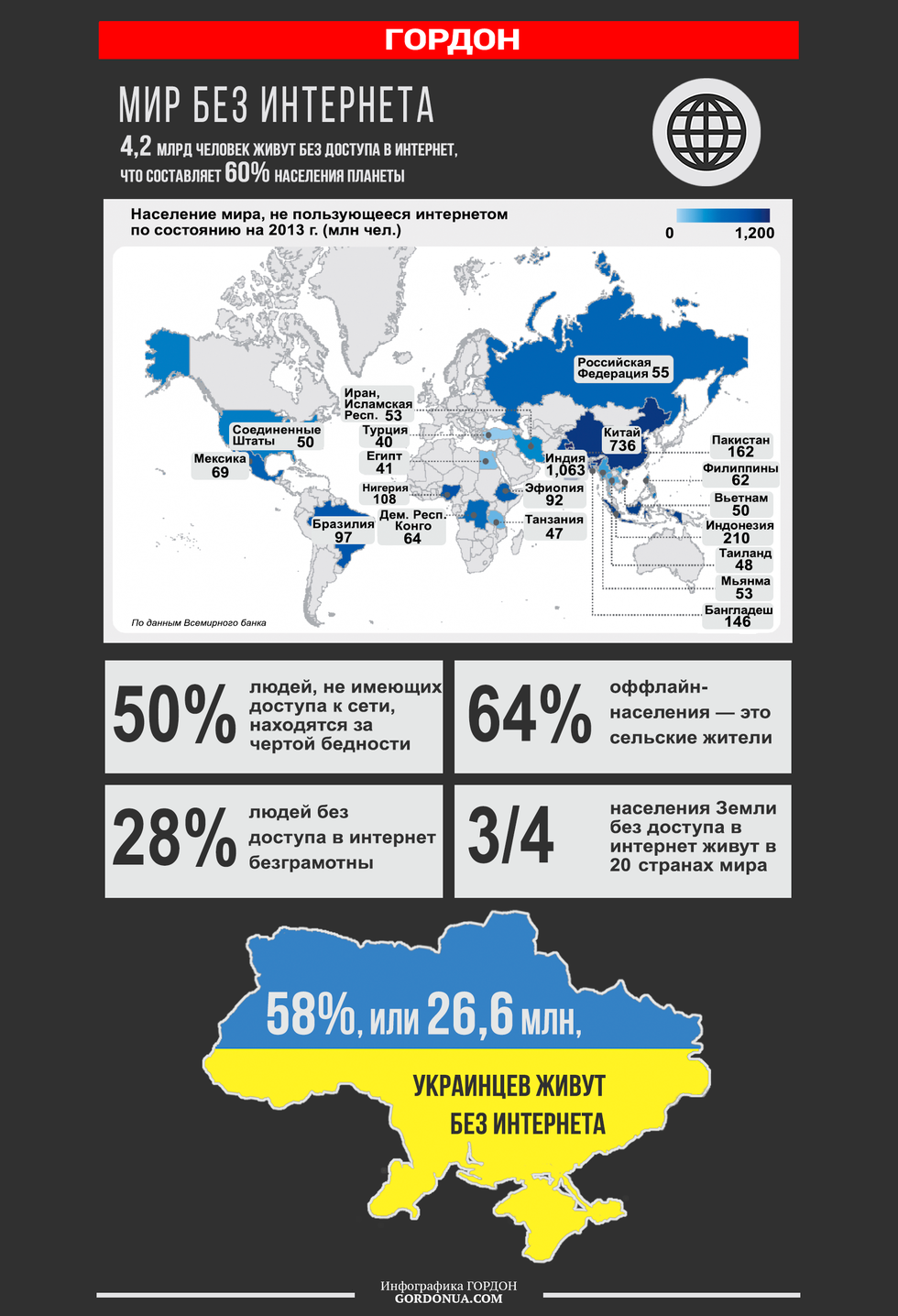 Почти 60% населения планеты (и столько же украинцев в стране) продолжают жить и работать, не имея доступа ко всемирной сети интернет.