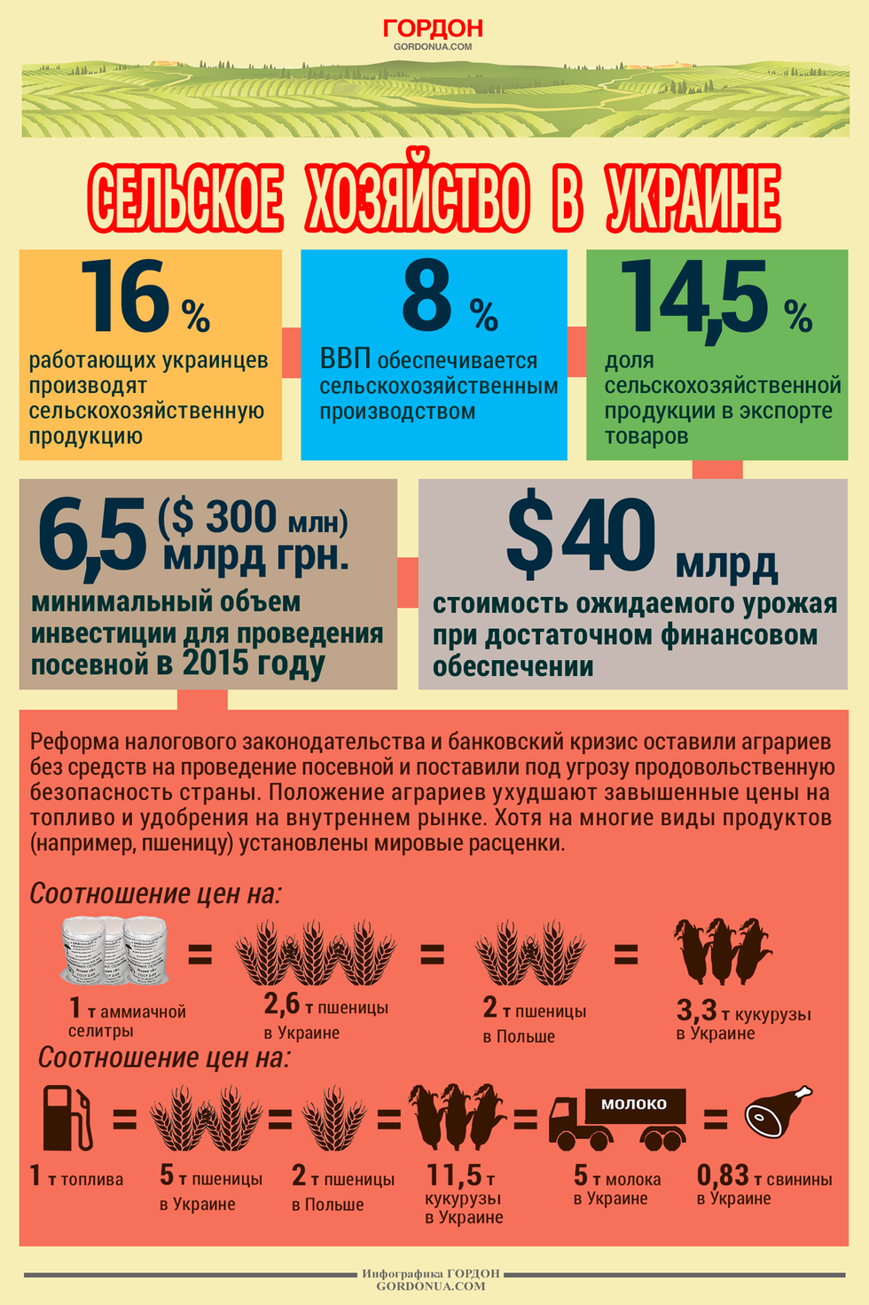 Все о правде и мифах о самом мощном ресурсе Украины – сельском хозяйстве, и что стало с отраслью в свете последних изменений законодательства, смотрите в инфографике "ГОРДОН". Читайте также интервью главы Аграрного союза: Если не поддержать украинских производителей сейчас, осенью будем искать валюту и поддерживать аграриев Турции и Польши.