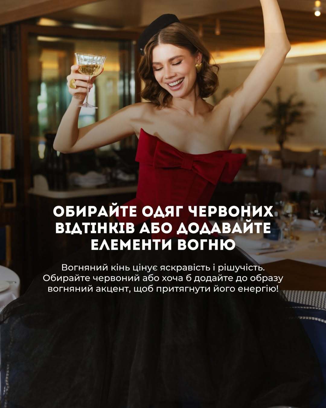 "Огненная Лошадь ценит яркость и решительность. Выбирайте красный или хотя бы прибавьте к образу огненный акцент, чтобы привлечь его энергию", – посоветовал стилист.
