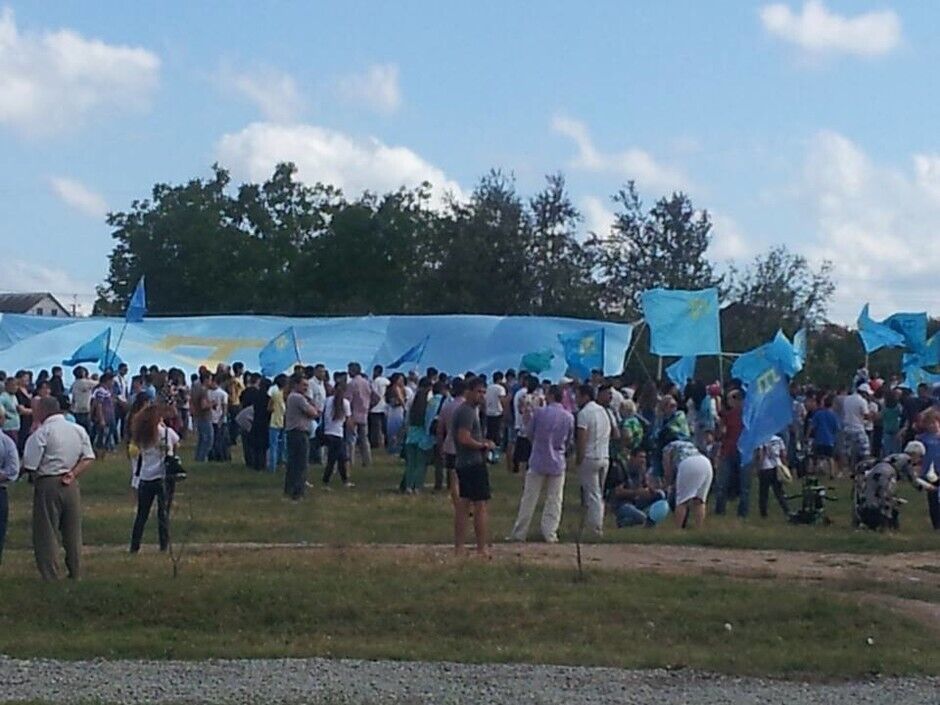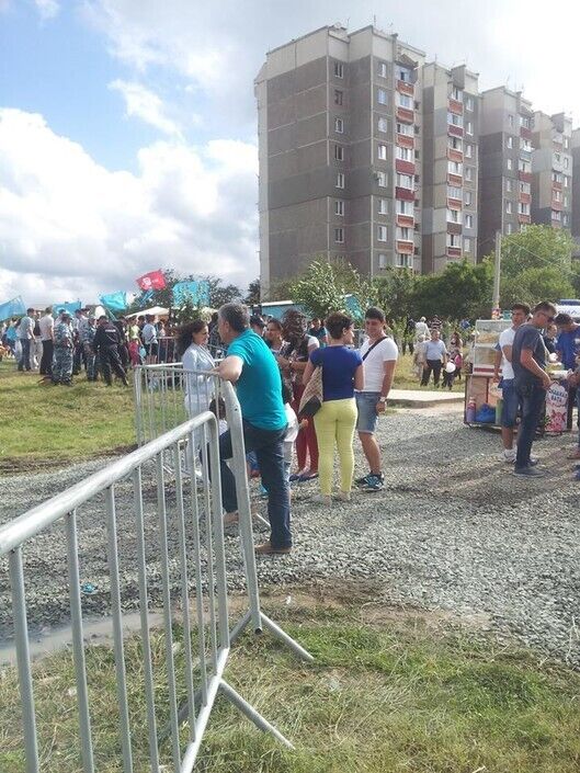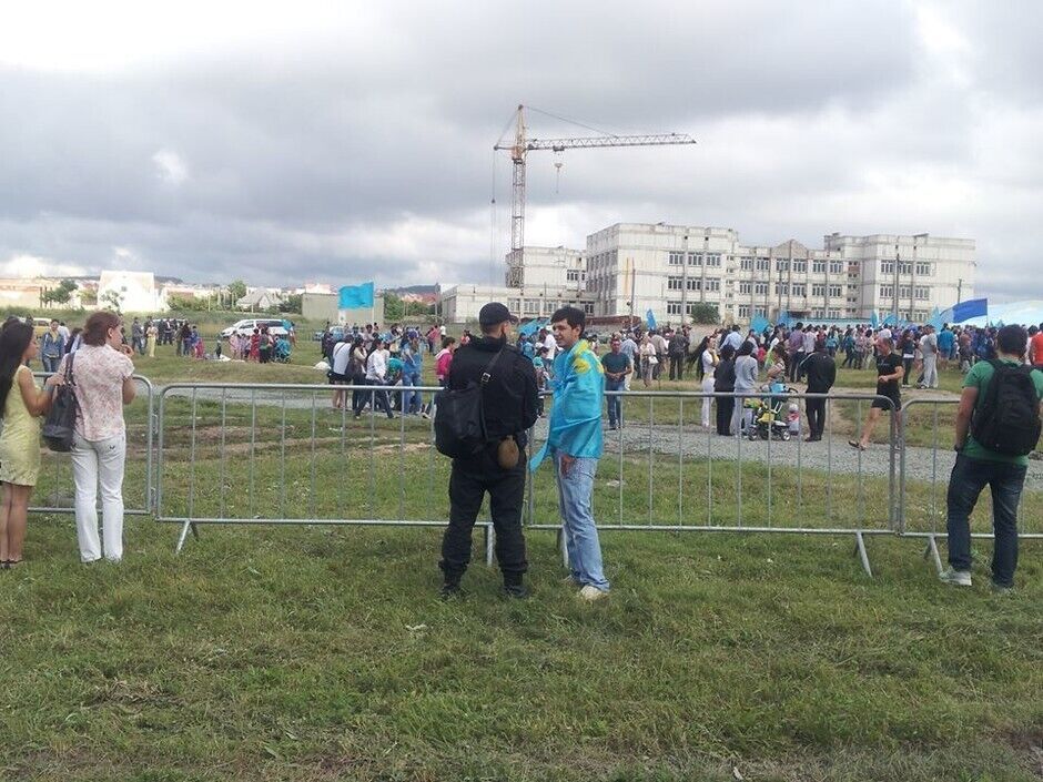 26 июня в микрорайоне Симферополя Фонтанты крымские татары провели празднование дня своего национального флага. Место проведения мероприятия оградили забором, на входе поставили охрану и металлоискатели, а на крышах близлежащих домов расположились снайперы.