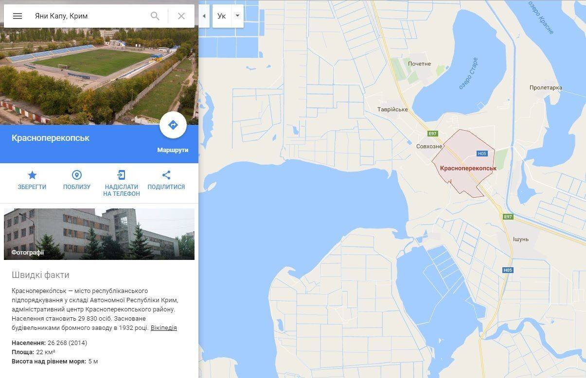 Например, Красноперекопск, который переименовали в Яны Капу, снова отображается с советским названием, хотя найти его можно по новому.