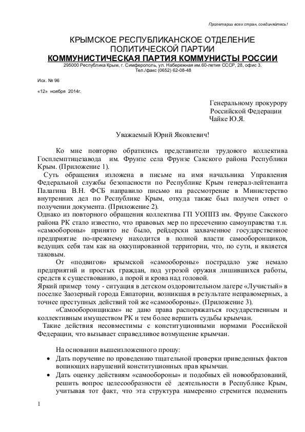 В связи со всем высказанным, политик попросил генпрокурора России дать поручение по проведению тщательной проверки "приведенных фактов вопиющих нарушений конституционных прав крымчан", а также решить вопрос целесообразности деятельности так называемой самообороны в Крыму.
