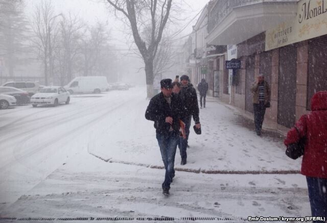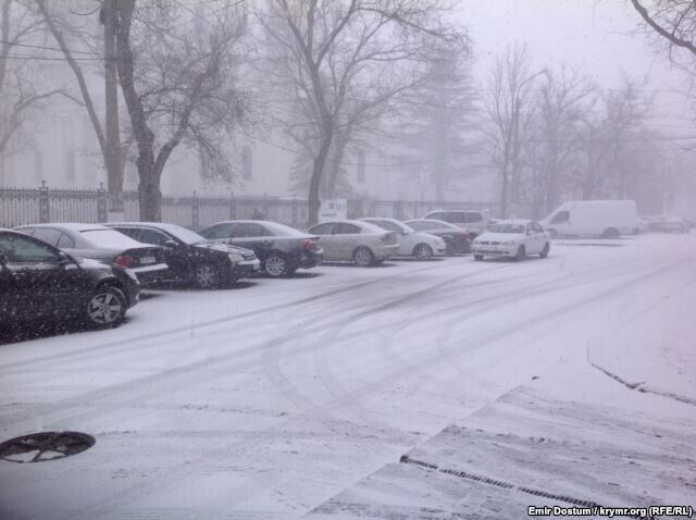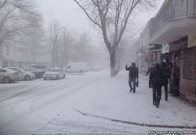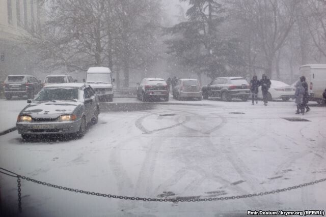 К годовщине аннексии Крыма Россией Симферополь засыпало снегом. Фоторепортаж