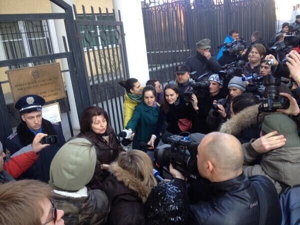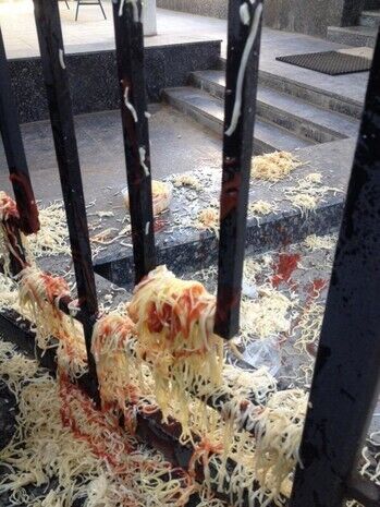 Позже к консульству подошли люди с лапшой и забросали здание представительства России.