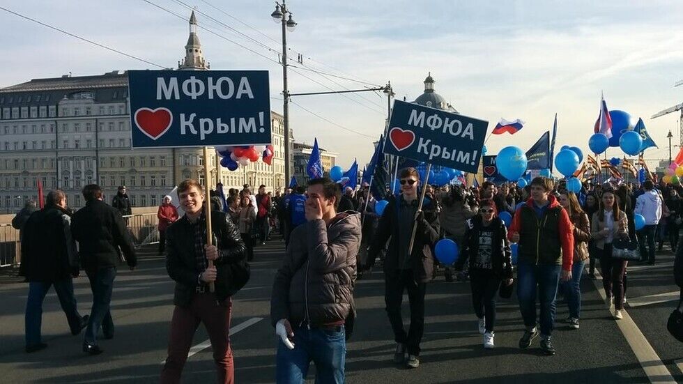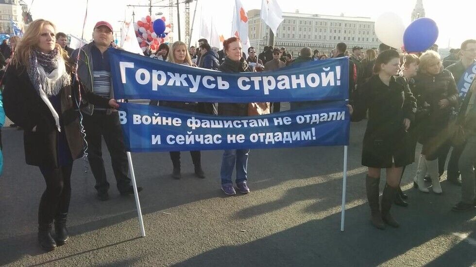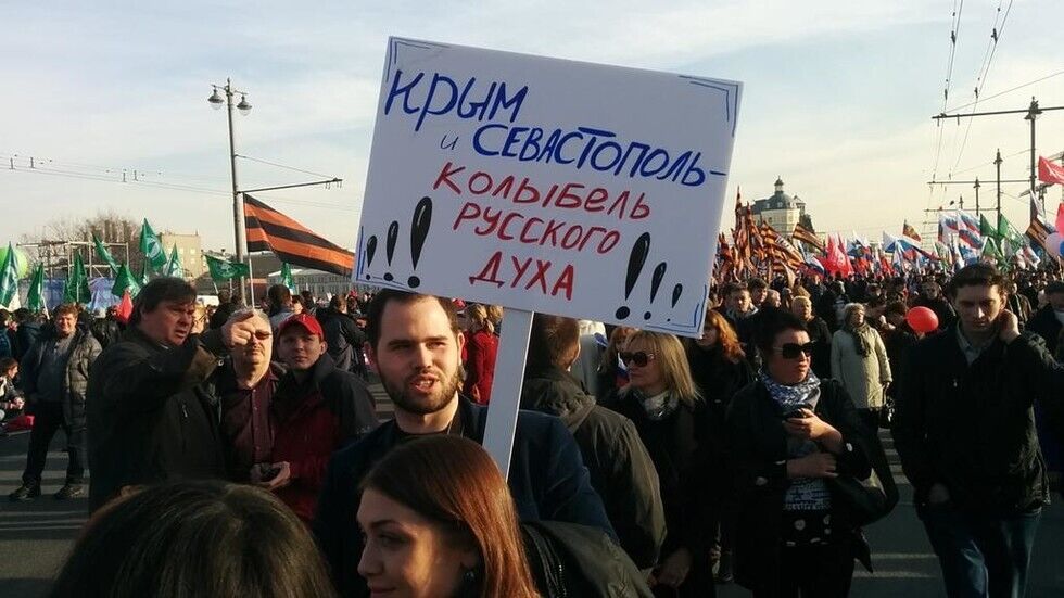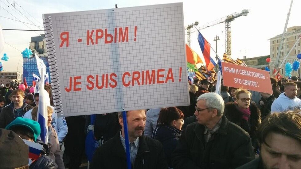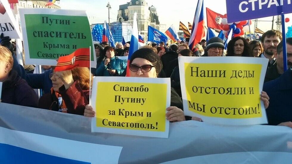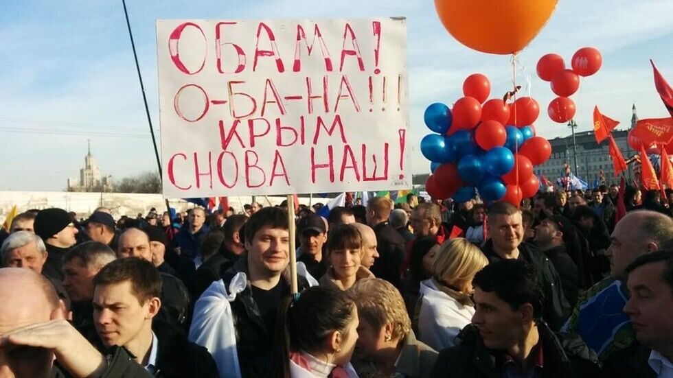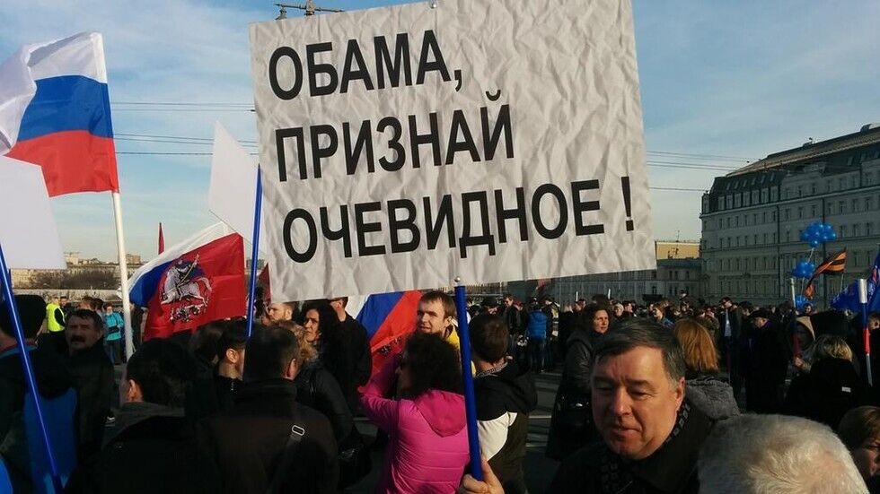 "Крым – наш. Обама, не завидуй!" В Москве проходит митинг к годовщине аннексии полуострова. Фоторепортаж