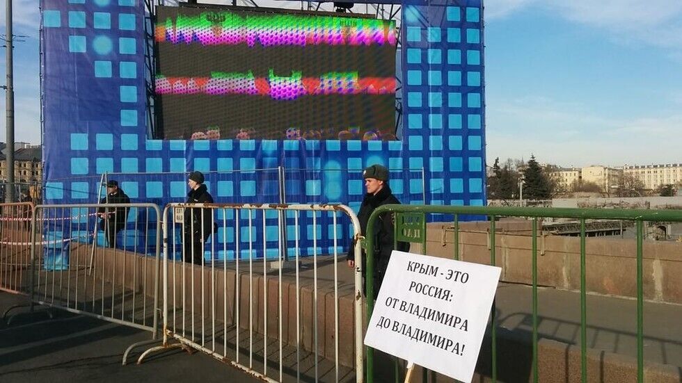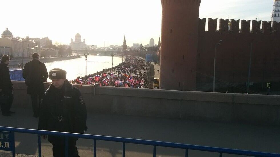 В среду, 18 марта, в центре Москвы, недалеко от места убийства российского оппозиционера Бориса Немцова начался митинг-концерт "Мы вместе", посвященный годовщине аннексии Крыма Россией. По данным российских СМИ, на Васильевском спуске уже находятся порядка 5 тыс. человек. Власти ожидают, что всего в митинге примут участие около 50 тыс. человек. "Новая газета" сообщала, что власти обязали бюджетников прийти на акцию. Планируется, что перед собравшимися выступят лидеры парламентских партий, общественные деятели, а также музыканты Григорий Лепс, Александр Маршал, Трофим, Лариса Долина, группа "Любэ" и другие. Ожидается также, что на сцену выйдет президент РФ Владимир Путин.