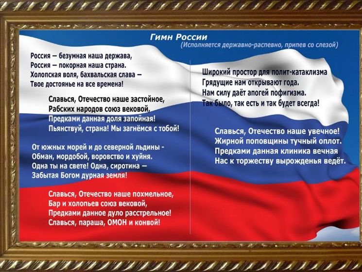 По данным севастопольского издания ForPost, во время открытия съезда на большом экране появился текст гимна, не совпадающий с официальным. К примеру, в первой строке Россия называлась не "священная", а "безумная наша держава". Кроме того, музыка сопровождалась "диссонансными нотами вперемешку с колокольной какофонией".