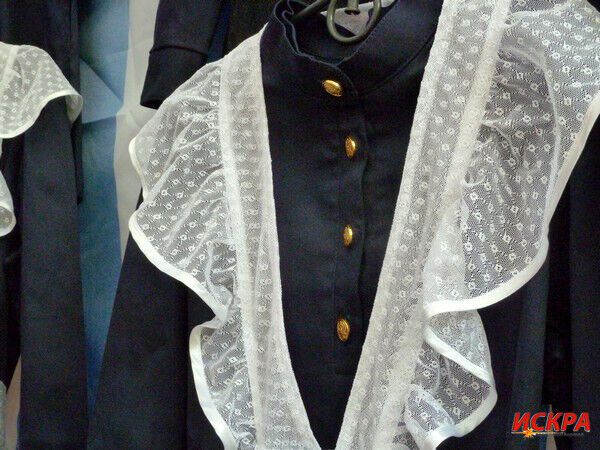 Форма для мальчиков состоит из гимнастерки и брюк (стоимость 1250 и 1350 российских рублей соответственно). Девочки будут ходить в школу в белых фартуках (900 рублей).