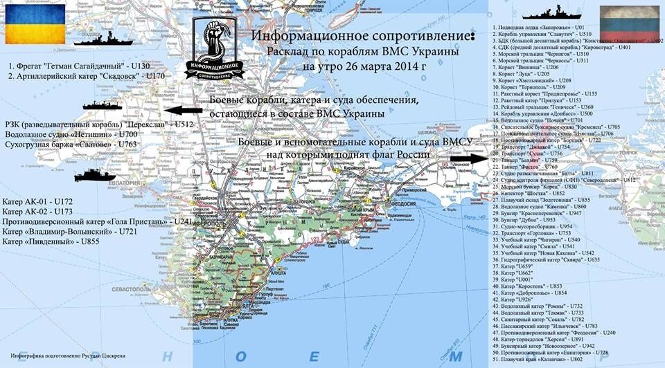 На данный момент у Украины осталось всего 10 из 61 крымских кораблей.