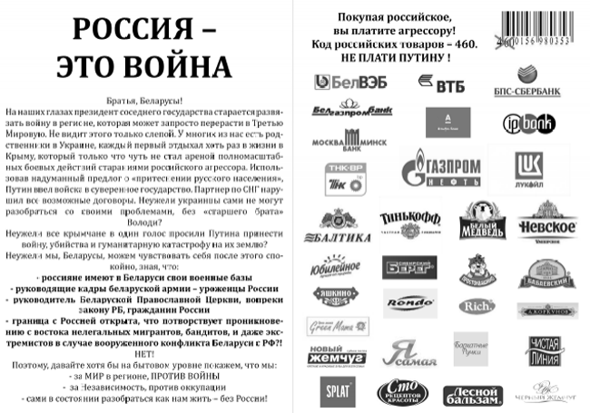 Гродненские активисты расклеивают по городу листовки с призывом не покупать российские товары.