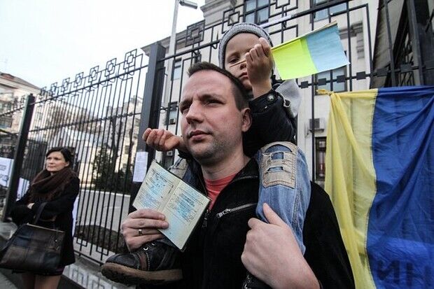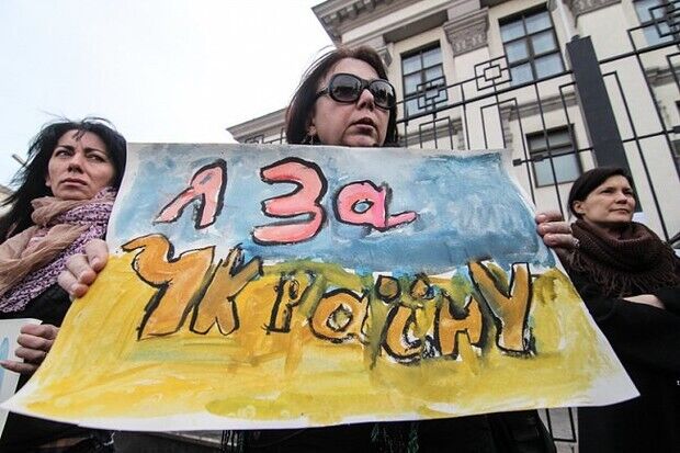 В Киеве у посольства России крымчане протестовали против референдума. Фоторепортаж