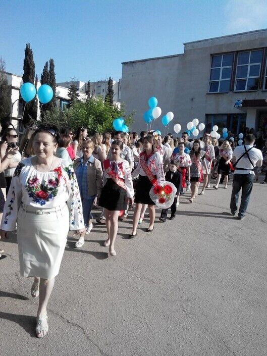 Большинство выпускников севастопольской гимназии №5 имени Леси Украинки пришли на "Последний звонок" в вышиванках, сообщила в Facebook мать одной из выпускниц Елена Латаш. Ученики надели вышиванки, несмотря на запрет директора гимназии. В начале мая Латаш писала, что ее дочь выгнали с уроков и обозвали "фашисткой" за то, что она пришла в школу в вышиванке.