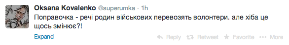 Журналист "Украинской правды" Оксана Коваленко сообщает в Twitter о том, что вещи украинских военных из Крыма вывозят волонтеры за свои собственные деньги.