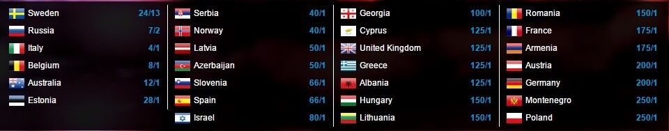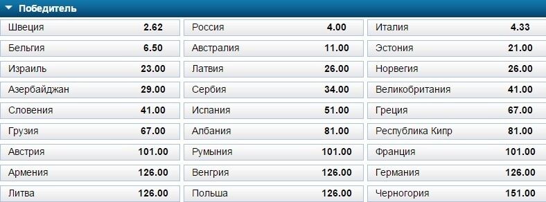 В пятерку фаворитов также входят исполнители из Бельгии и Австралии.