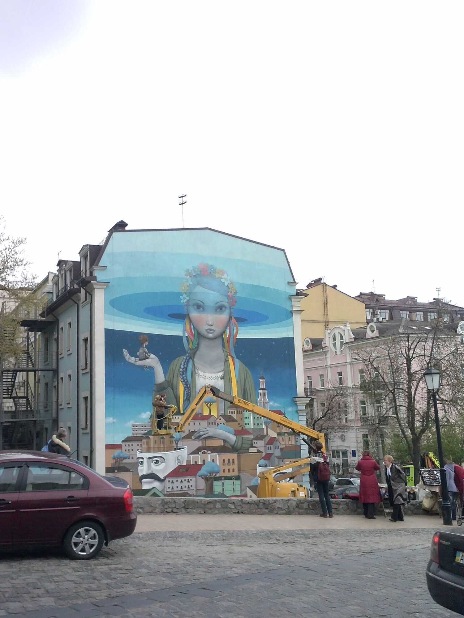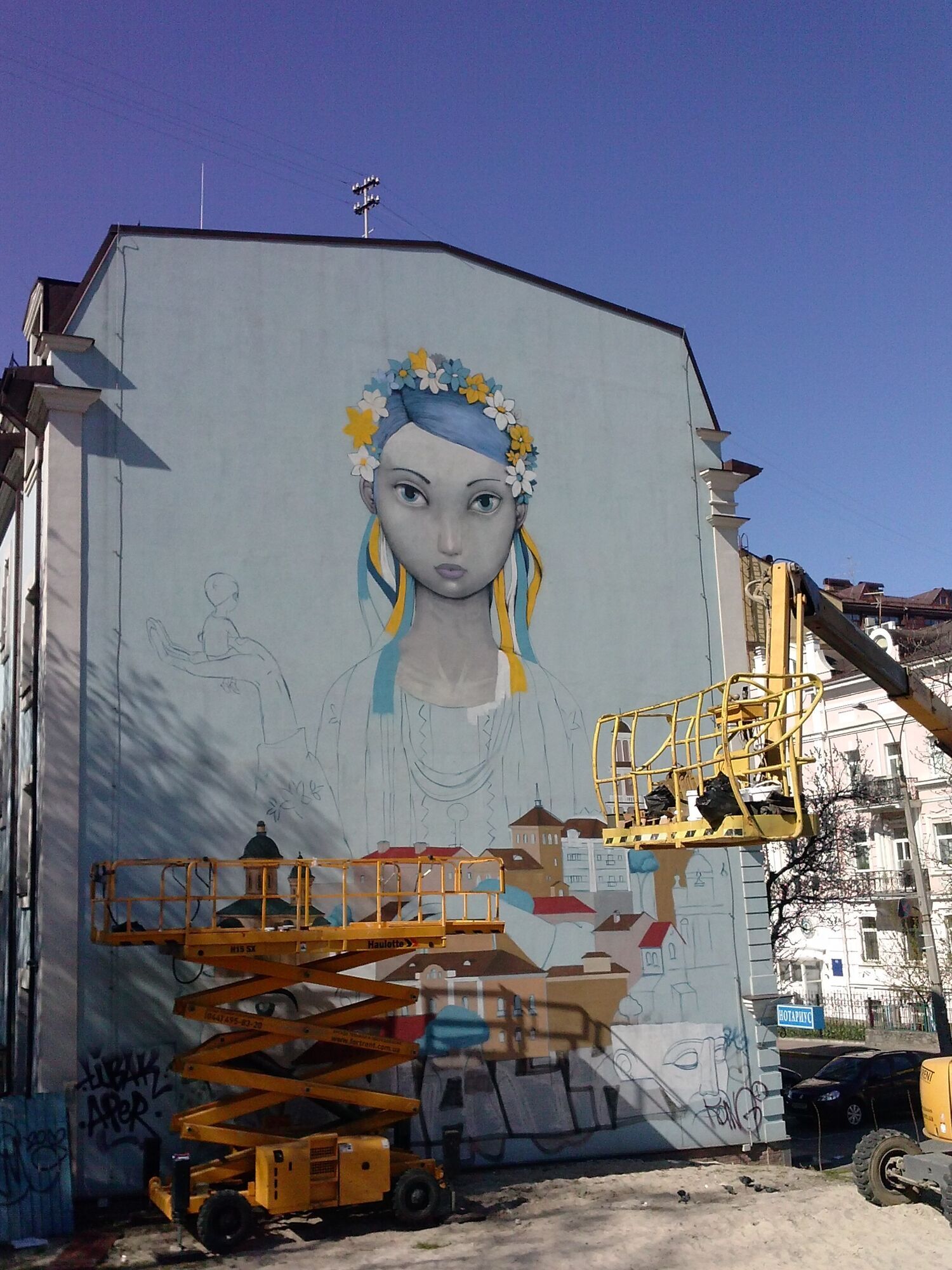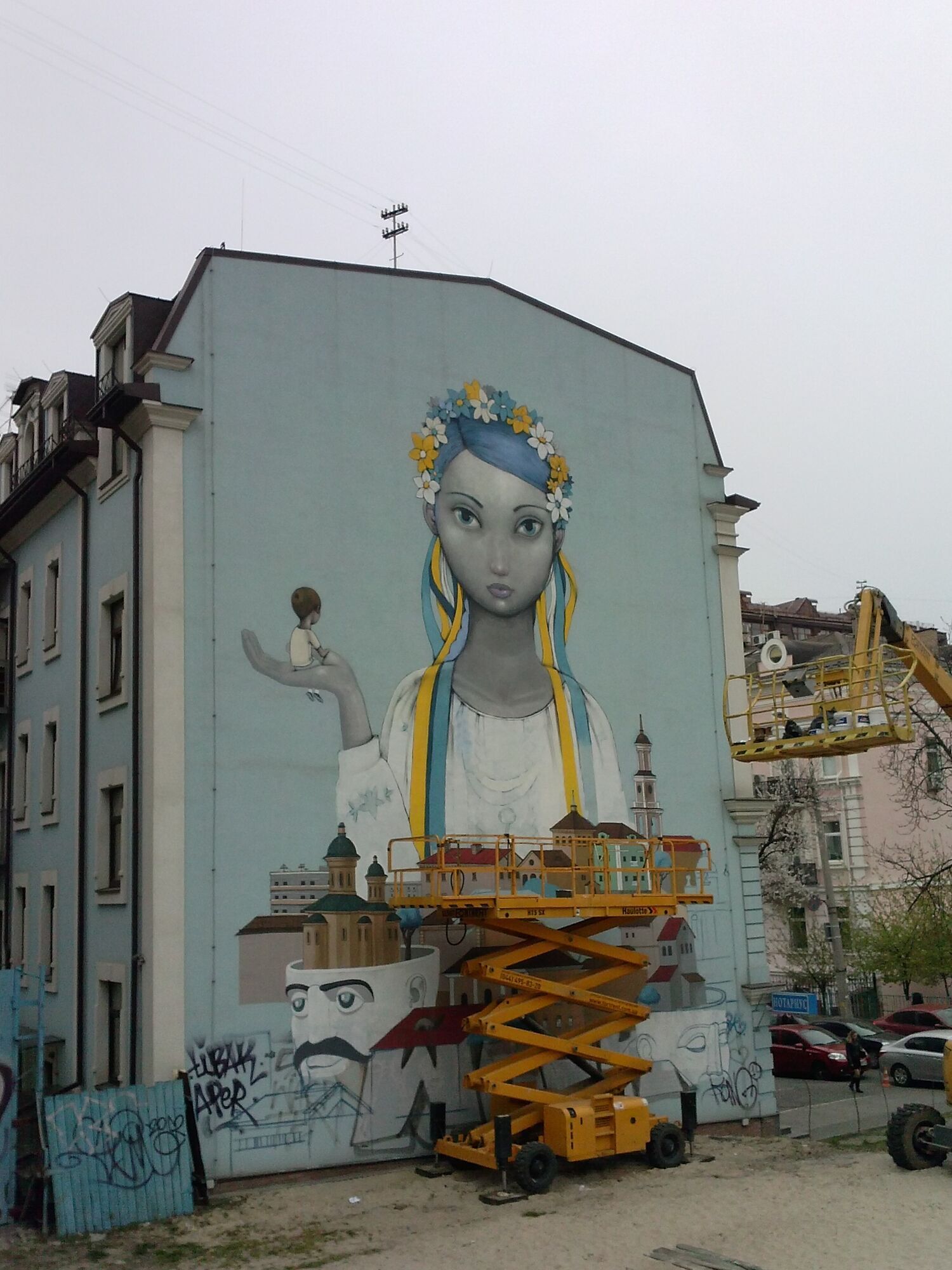 Работа художников заняла 11 дней. На 5-этажном доме появилось 15-метровое граффити, которое сами художники не отождествляют с политическими проблемами в Украине, а уточняют, что рисунок скорее обращен в будущее, возрождение страны.