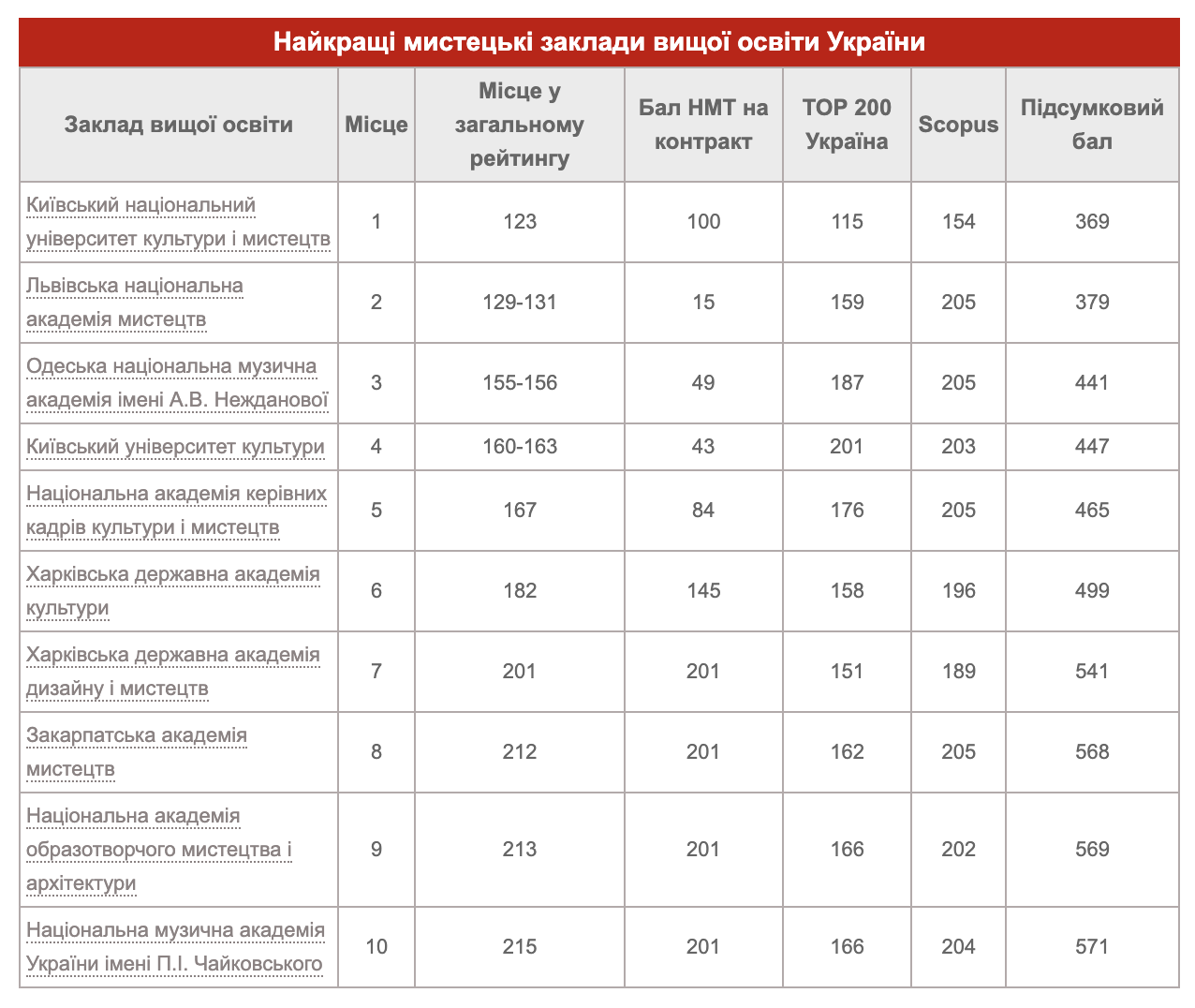Киевский национальный университет культуры и искусств удерживает лидирующую позицию – первое место в топ-10 лучших заведений высшего образования в сфере культуры и искусств Украины.