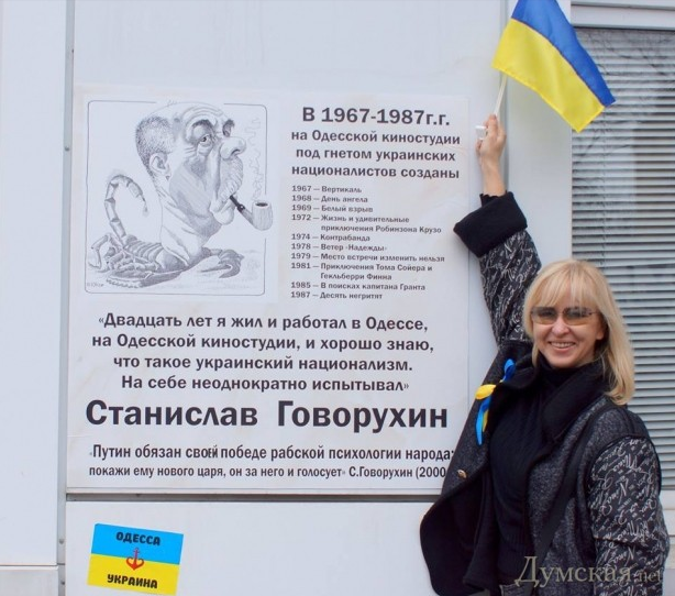 На фасаде Одесской киностудии появилась шутливая мемориальная доска с профилем знаменитого российского кинорежиссера Станислава Говорухина и его высказыванием о том, как он натерпелся от украинских националистов. Об этом сообщает издание "Думская.net"