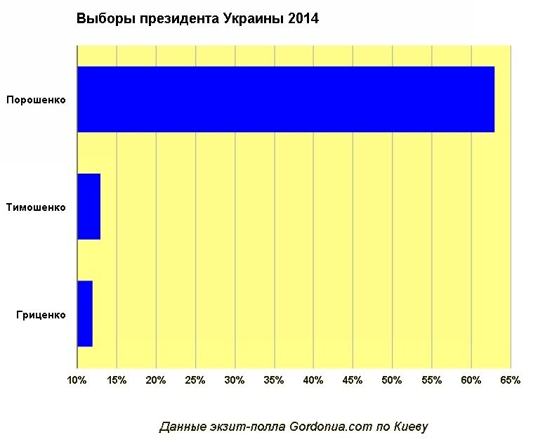Gordonua.com: В Киеве за Порошенко проголосовали 63%, за Тимошенко – 13%