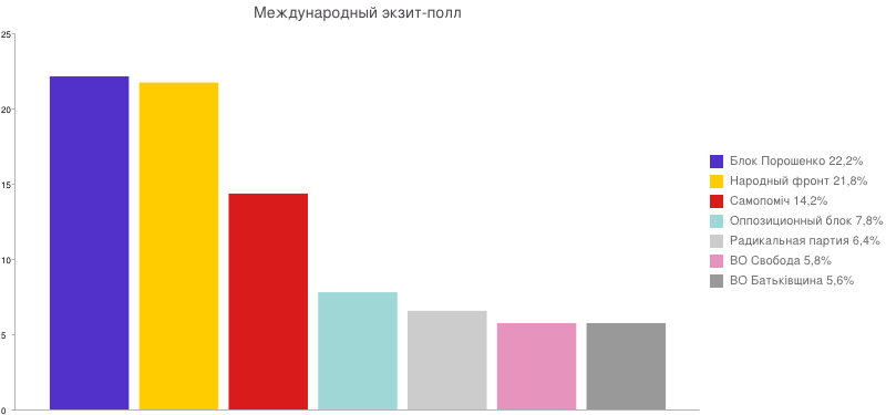 Международный эксит-полл: Блок Петра Порошенко – 22,2%, "Народный Фронт" – 21,8%, "Самопомощь" – 14,2%
