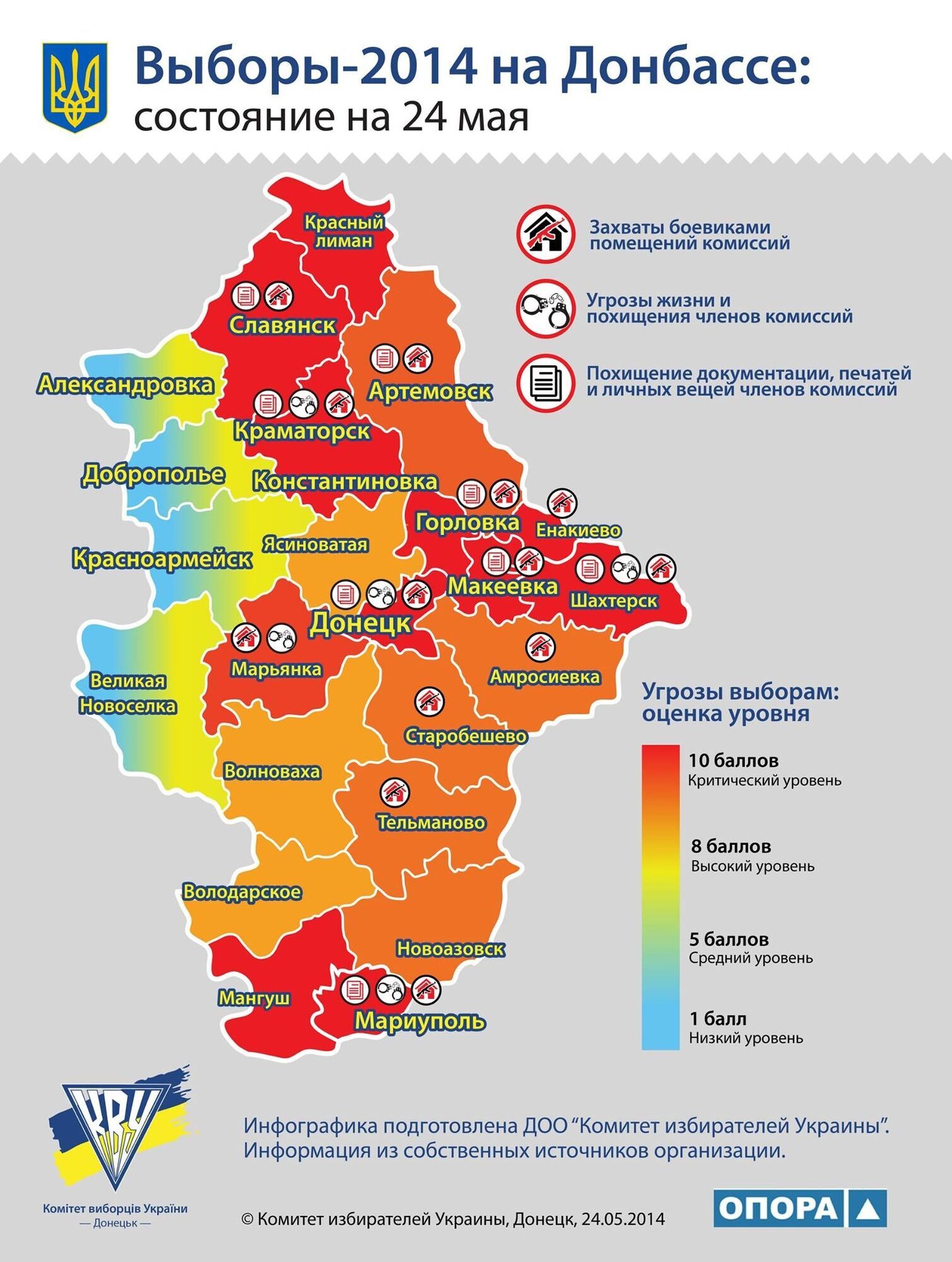 Ситуация с безопасностью на выборах в Донецкой области ухудшилась 24 мая. Инфографика.