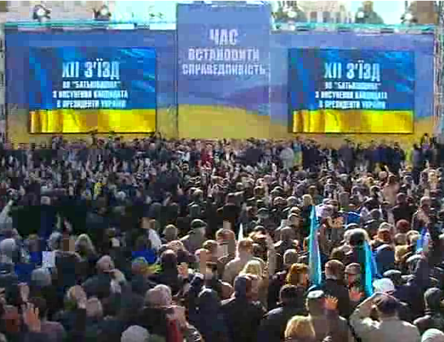 Политсовет партии рекомендовал съезду выдвинуть кандидатом на пост президента Юлию Тимошенко. Ее кандидатуру поддержали в своих выступлениях Юрий Луценко и Арсений Яценюк. После двух с половиной часов митинга и выступлений собравшиеся единогласно проголосовали за выдвижение Тимошенко кандидатом в президенты Украины.