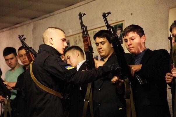 Бойцы "Азова" провели для киевских школьников тактические тренировки с оружием. Фоторепортаж