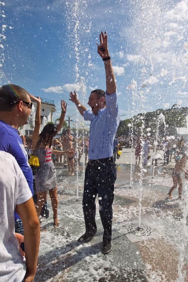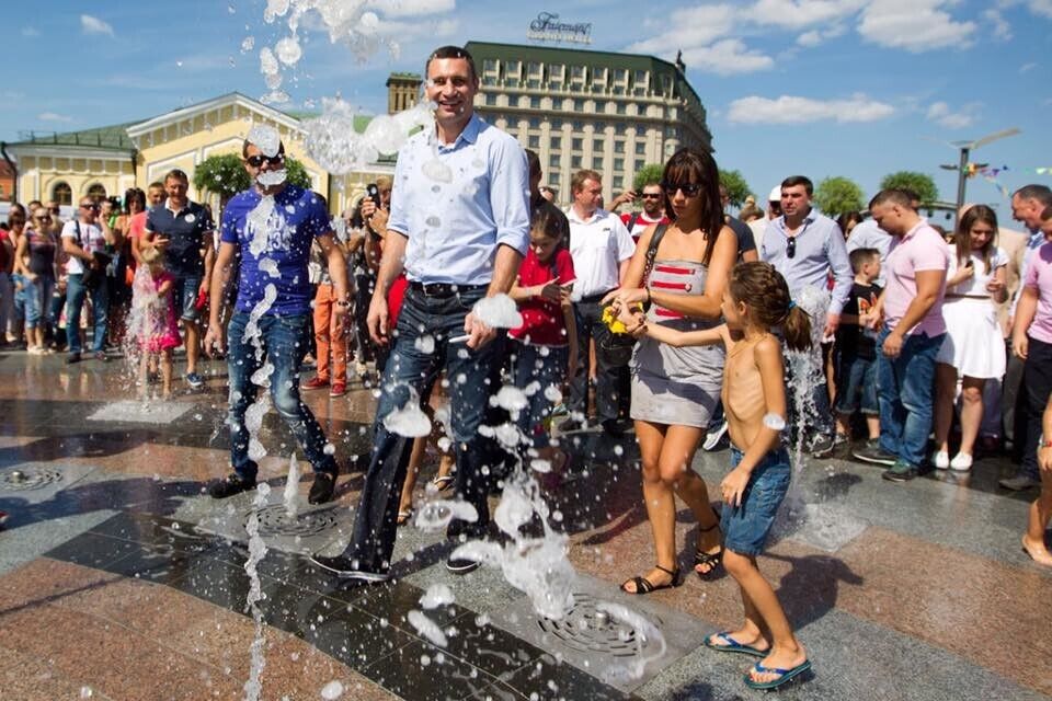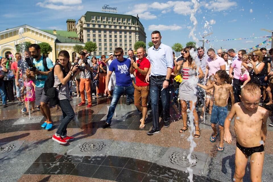 Кличко побывал на Почтовой площади и искупался с киевлянами в фонтане