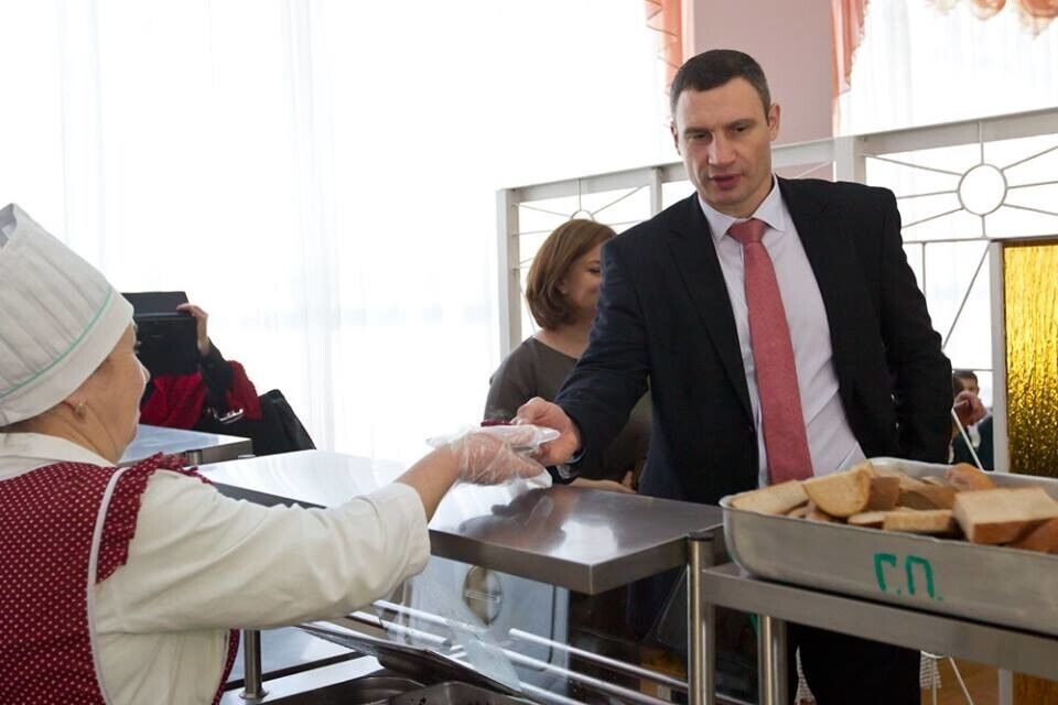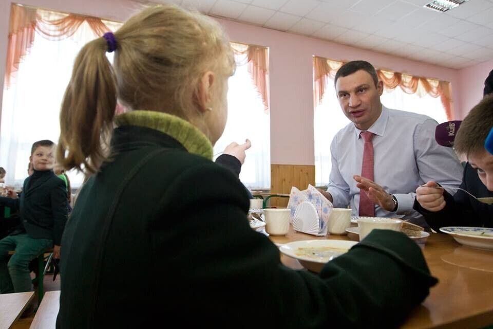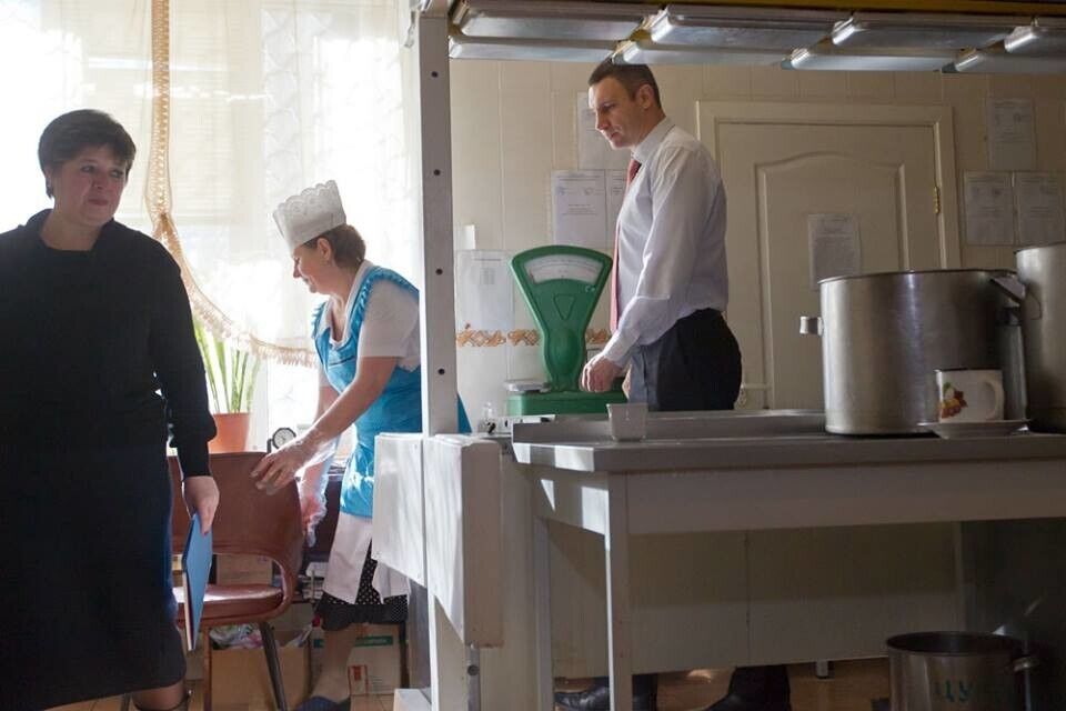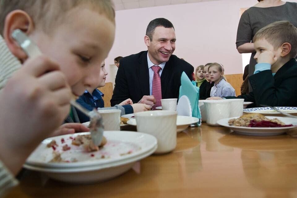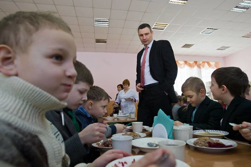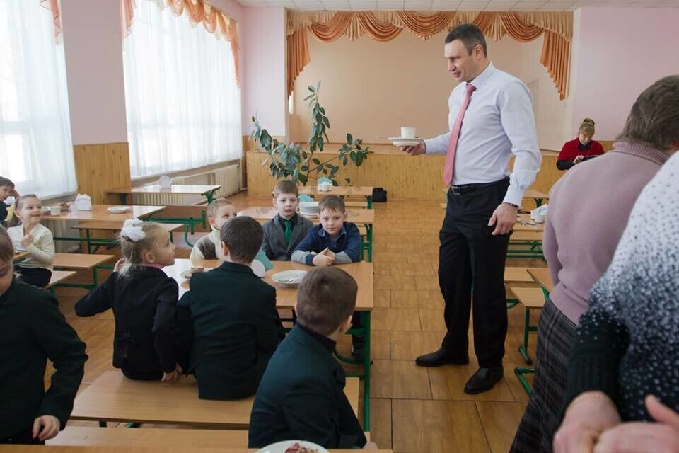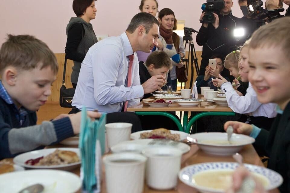 Мэр Киева Кличко позавтракал в школьной столовой. Фоторепортаж