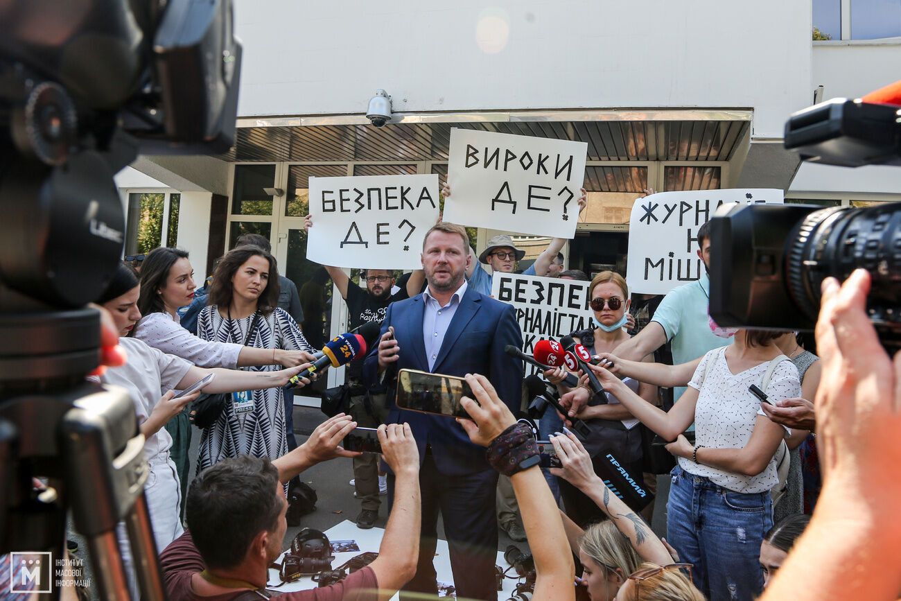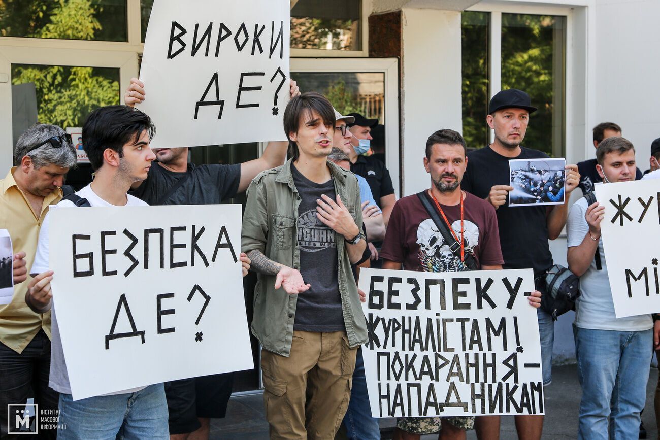 "Реальные наказания для нападающих – это скорее исключение из правил. Истории наших коллег Сергея Нужненко, Владислава Красинского, Дмитрия Реплянчука, журналистов Bihus.info, коллег из проекта "Схемы" и десятков других по всей стране только доказывают это. За угрозы, уничтожение имущества, избиения журналистов почти никогда не наступает уголовная ответственность", – заявили участники акции.