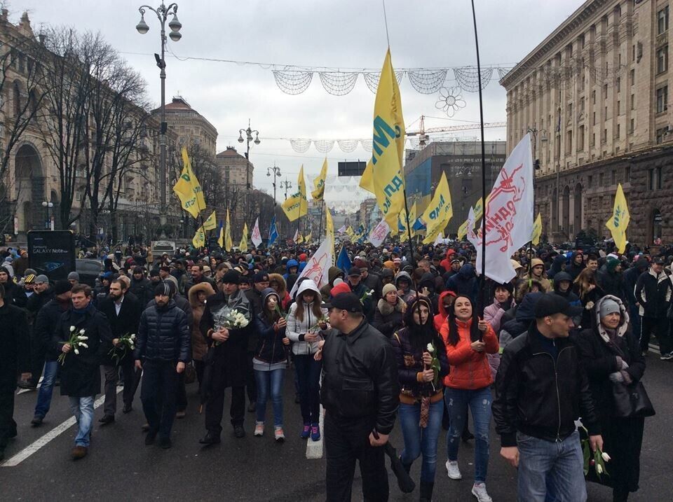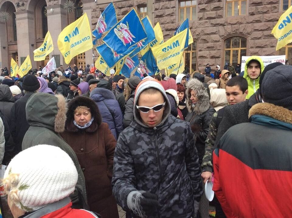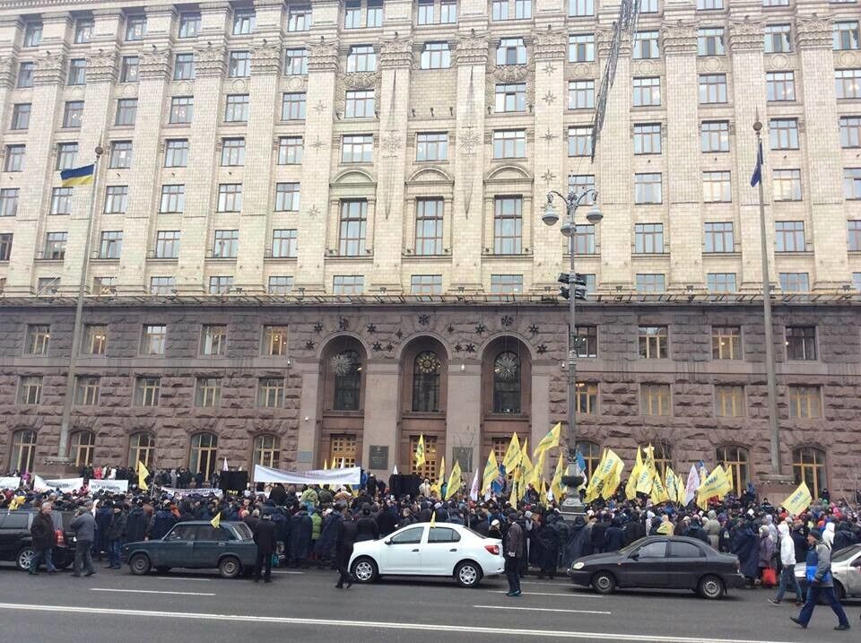 Под зданием КГГА проходит митинг, участники которого держат флаги "Мир и справедливость" и белые цветы, сообщает "Громадське.ТВ". Дорога перед КГГА заблокирована автомобилями. Ранее советник главы МВД Антон Геращенко сообщал, что митинг организовали люди, имеющие отношение к Оппозиционному блоку, и всем участникам платят по 100 гривен.