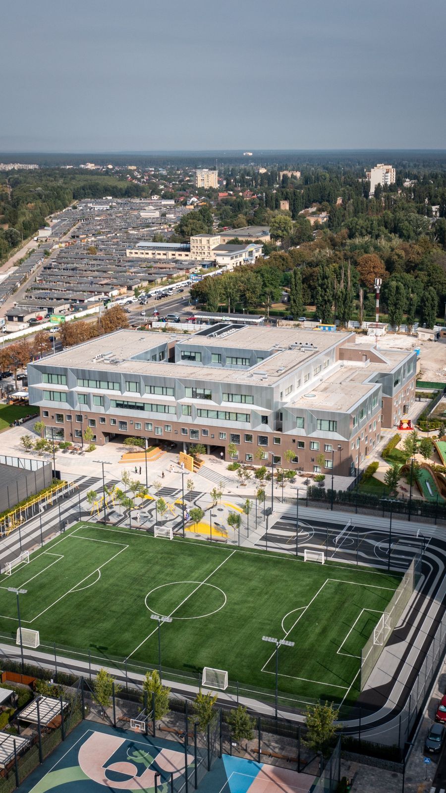 Новое учебное заведение расположено на улице Мечты в жилом квартале "Файна Таун" и имеет возможность обучения для 680 детей. Коллегиум, построенный компанией KAN Development во время полномасштабной войны, оснащен современным укрытием площадью 4028 м².