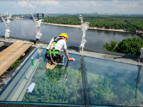 Мост соединит два туристических маршрута – Владимирскую горку и Крещатый парк. На отдельных участках смотровых площадок на мосту установлен стеклянный пол, прочность которого мэр проверял 20 мая.