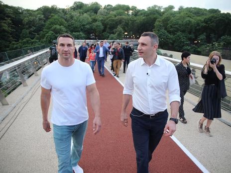 Мост, который соединяет Владимирскую горку и Крещатый парк, торжественно открыли 25 мая. Во время церемонии мэр Киева Виталий Кличко рассказал, что площадь стеклянного пола составляет 70 м², он проверил его прочность, попрыгав вместе с братом Владимиром. По словам мэра, стоимость строительства всего комплекса – около 400 млн грн.