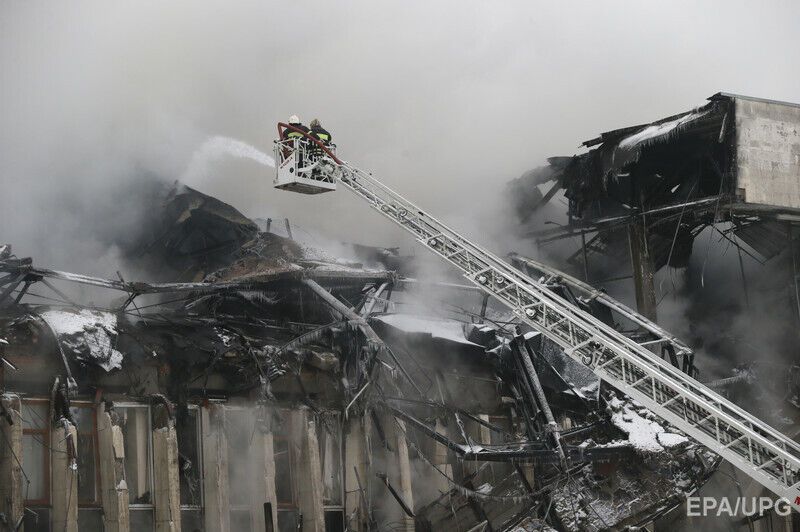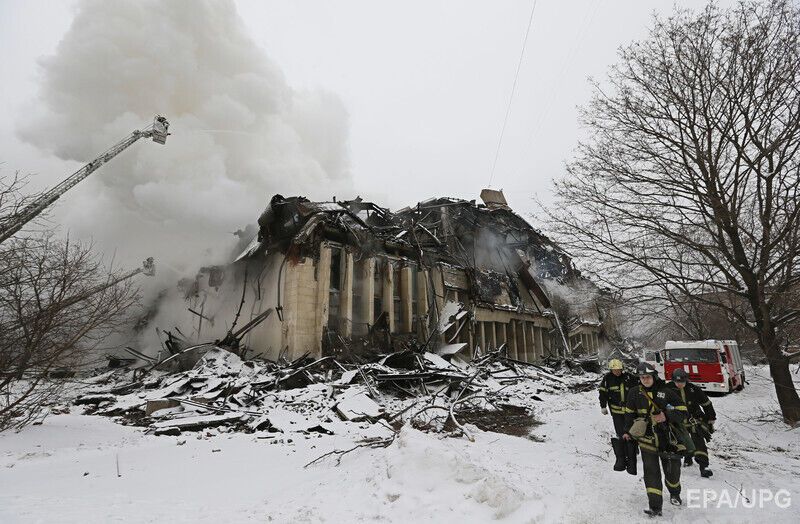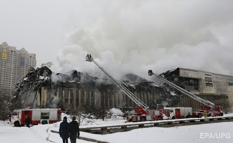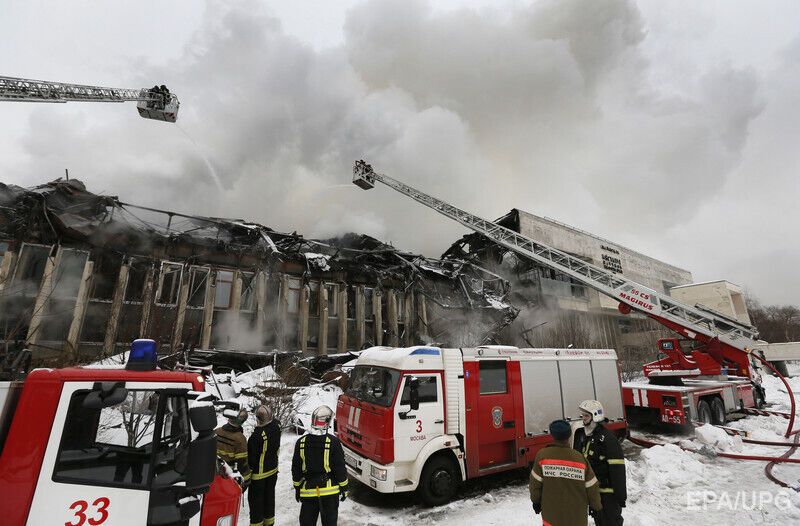 В здании произошло частичное обрушение кровли на площади 1 тыс. кв. м. По пятибальной шкале инциденту была присвоена оценка 3. Причины пожара пока не сообщаются.