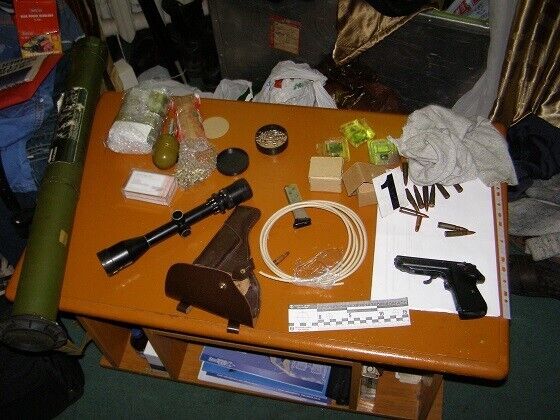 Кроме этого, в доме, где проживали подозреваемые, сотрудники милиции изъяли большое количество патронов различного калибра, два карабина СКС, снаряженный магазин к автомату Калашникова, шесть штык-ножей, два пистолета разных марок, пусковое устройство к гранатомету РПГ-26, пять радиостанций, четыре капсюля-детонатора, две дымовые гранаты, пневматическую винтовку без маркировки, сигнальную ракету, а также два предмета, похожих на гранаты.