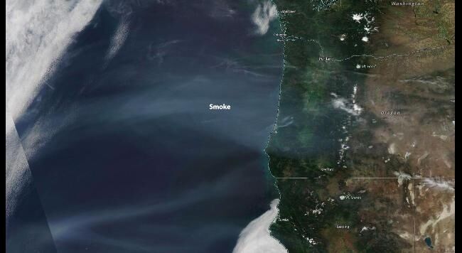 На спутниковых снимках, выложенных на сайте Метеорологической службы США, виден смог, окутавший штаты Аляска, Вашингтон, Орегон и Калифорния.