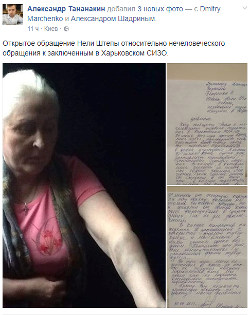 "Хочу сообщить вам о нечеловеческих условиях содержания в харьковском учреждении исполнения наказаний №27. 24 июня 2017 года офицер этого учреждения меня избил, руководство, чтобы избежать конфликта, сразу же перевело Щербакова Д. в другое учреждение – 18-ю колонию. В самом харьковском учреждении исполнения наказаний путем угроз заставляют подписывать заключенных лживые сведения", – заявила Штепа.