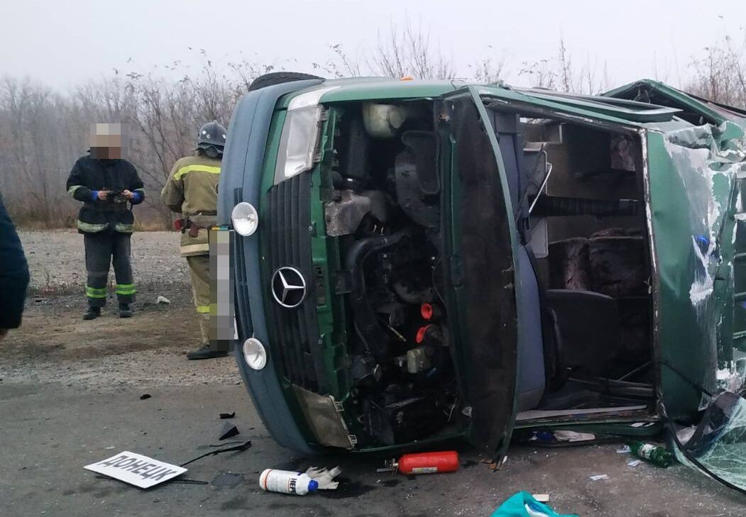 После аварии на оккупированной территории Донецкой области в больницу попали водитель микроавтобуса и 11 пассажиров, еще двое пассажиров погибли на месте происшествия.