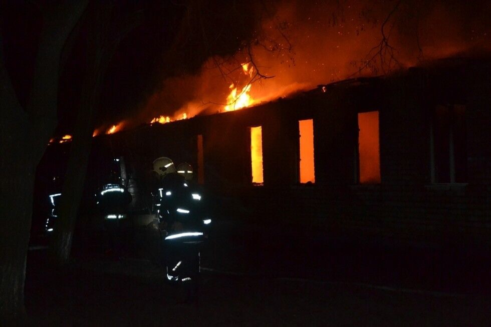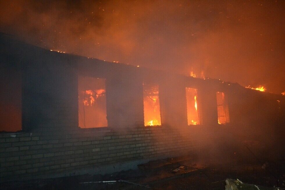 "Было установлено, что открытым пламенем горит крыша одноэтажной казармы", – сказано в сообщении.