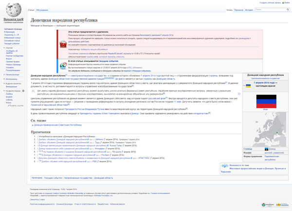 19.13 Страницу Донецкой народной республики в Википедии уже удалили.