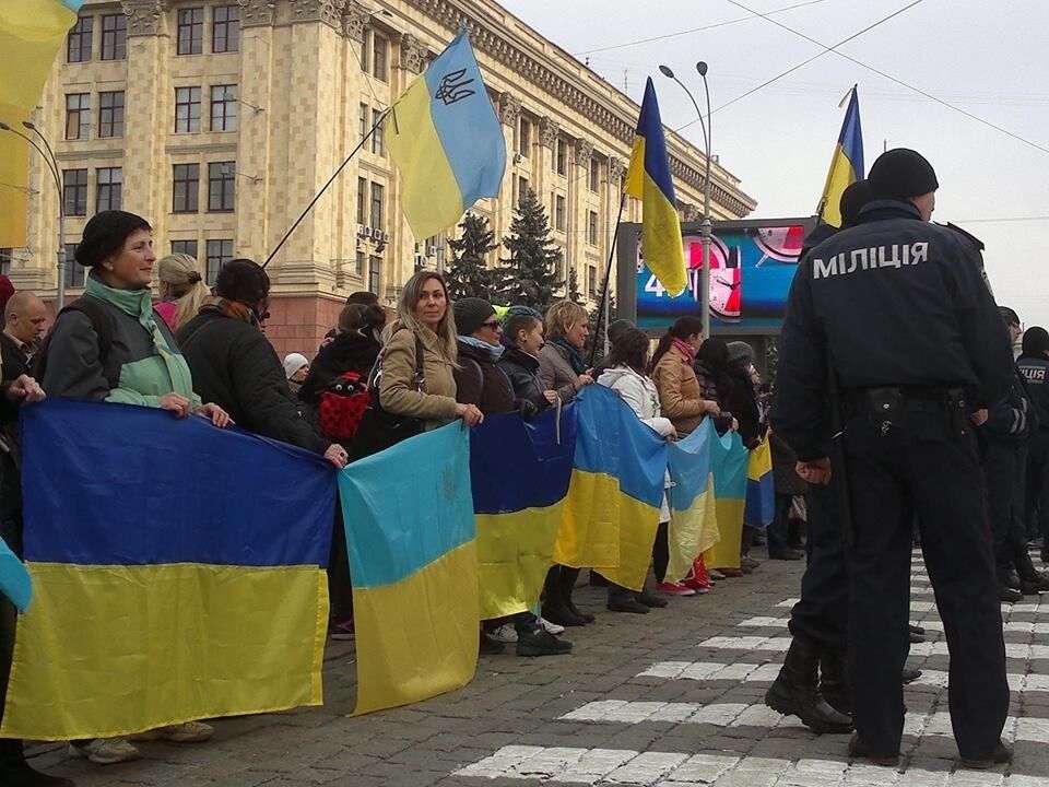 11.18 Под зданием Харьковской ОГА продолжается митинг сторонников единства Украины.