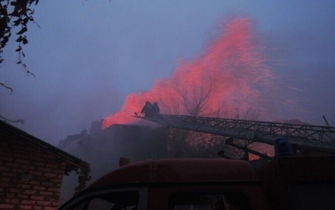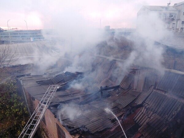 Пожарные потушили сильный пожар в доме на Подоле. Фоторепортаж