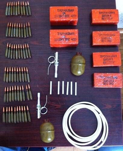 Как сообщает пресс-служба СБУ, в ходе спецоперации оперативники приобрели у злоумышленника шесть тротиловых шашек общим весом 1,6 кг с взрывателями, "бикфордов шнур", гранату РГД-5 с запалом и патроны калибра 5,45 мм.