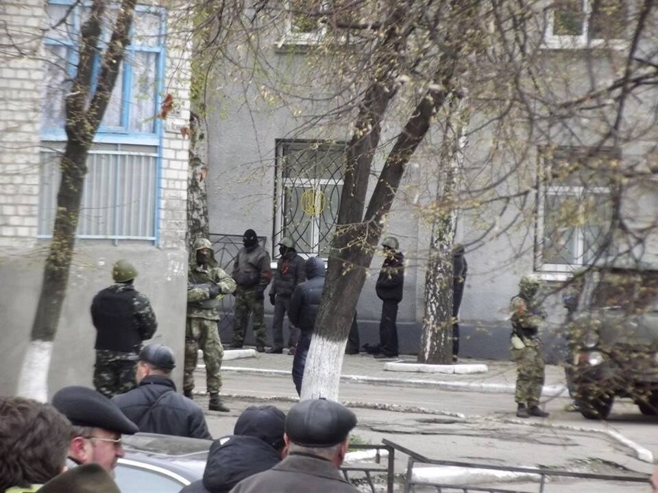 Утром 12 апреля в Славянске вооруженные люди в камуфляже захватили горотдел милиции, сообщил в своем Facebook Арсен Аваков.