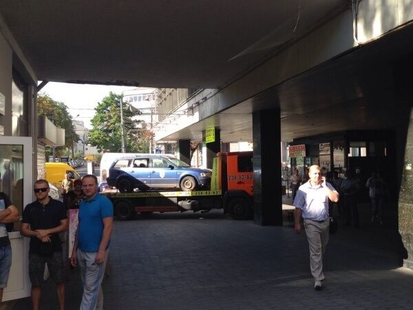 Подъезд к зданию Госфискальной службы заблокирован эвакуатором.