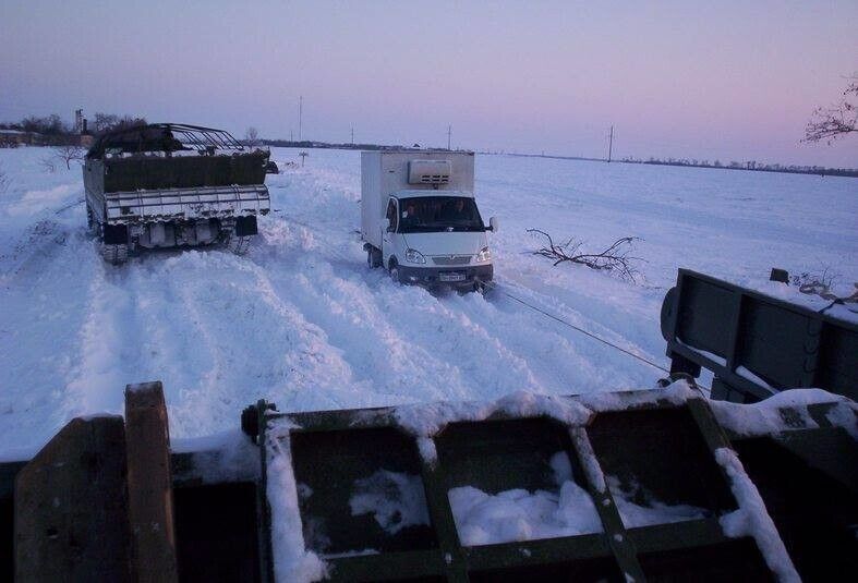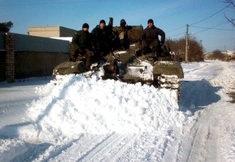 Снежные завалы на юге Украины убирает военная техника. Фоторепортаж