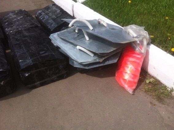 9 мая около 07.00 милиционеры задержали автомобиль "RENAULT TRAFIC", которым управлял 54-летний житель Киева. Внутри автомобиля были найдены 39 металлических щитов и восемь строительных касок.