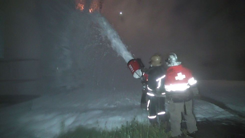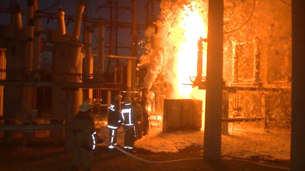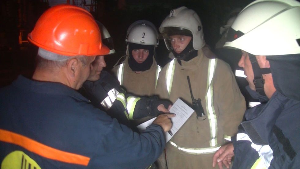 "Восемь подразделений ГСЧС были сразу направлены к месту происшествия в составе 40 спасателей... Ко времени прибытия на пожар спасателей горел масляный выключатель трансформатора №12Т и 2 тонны смазки на площади 10 кв. м", – говорится в сообщении.