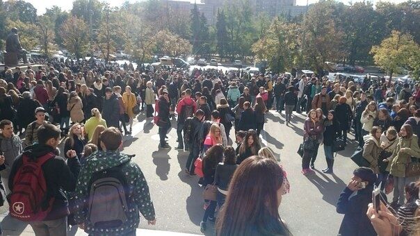 В ГСЧС получили сообщение о находке, по предварительным данным – артиллерийском снаряде 76 мм времен Второй мировой войны, в 12.30. на место сразу прибыли 7 спасателей-пожарных, они эвакуировали из здания около 5000 человек (преподавателей и студентов). Здание университета окружили работники Национальной полиции.
