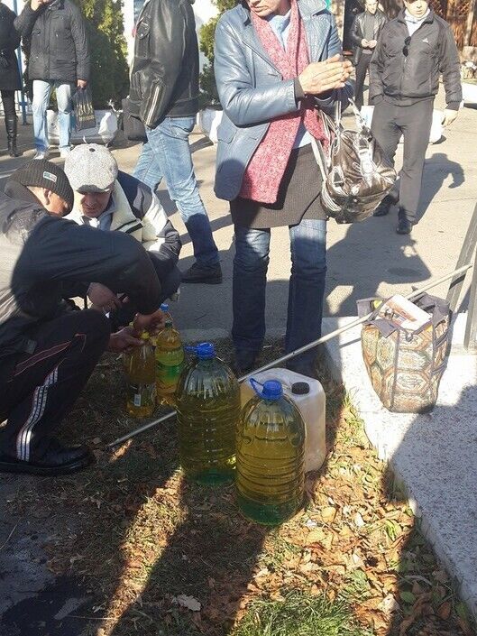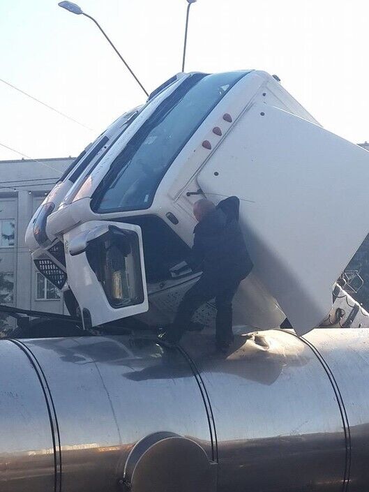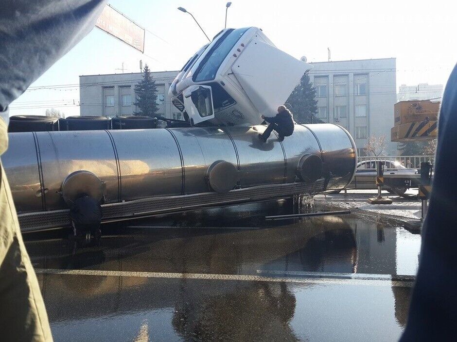 Из цистерны, по данным очевидцев, вытекло немало подсолнечное масла. Как сообщил в Facebook пользователь Dannyboy Kiev, к месту ДТП подтянулись прохожие, которые начали наливать масло в свои бутылки.